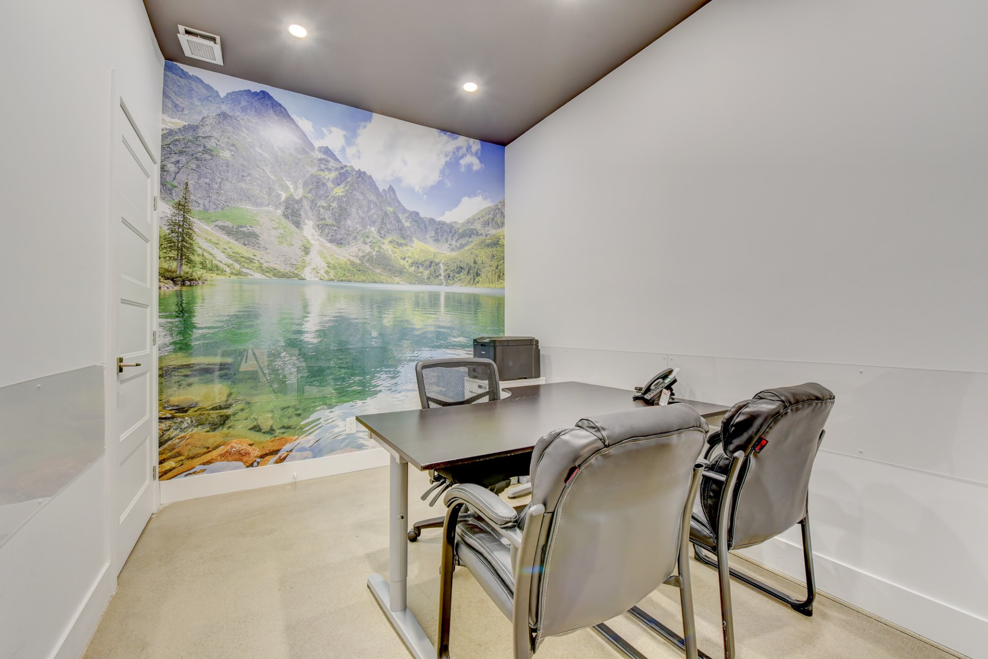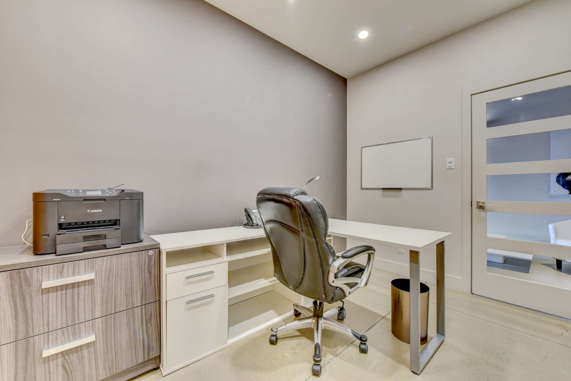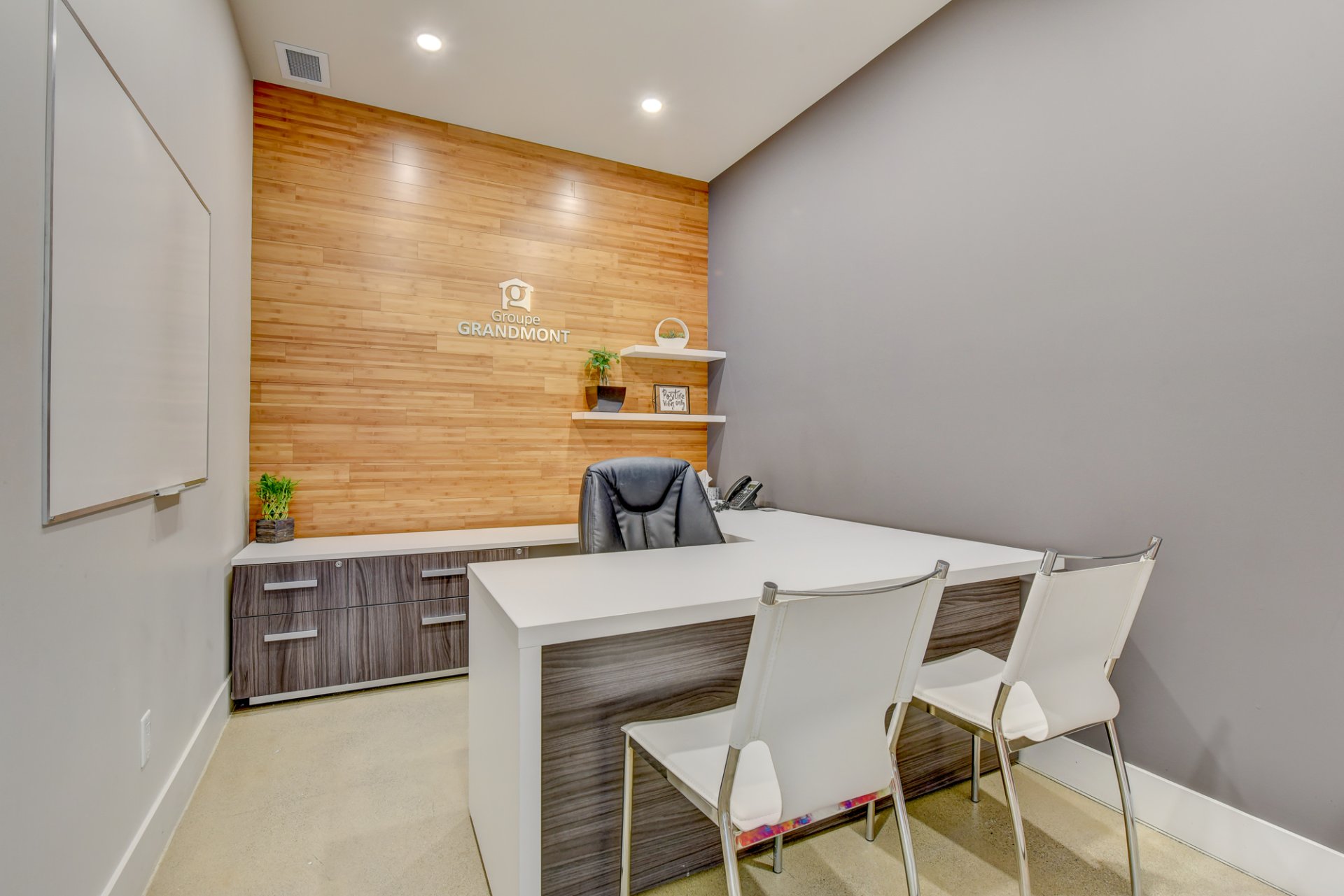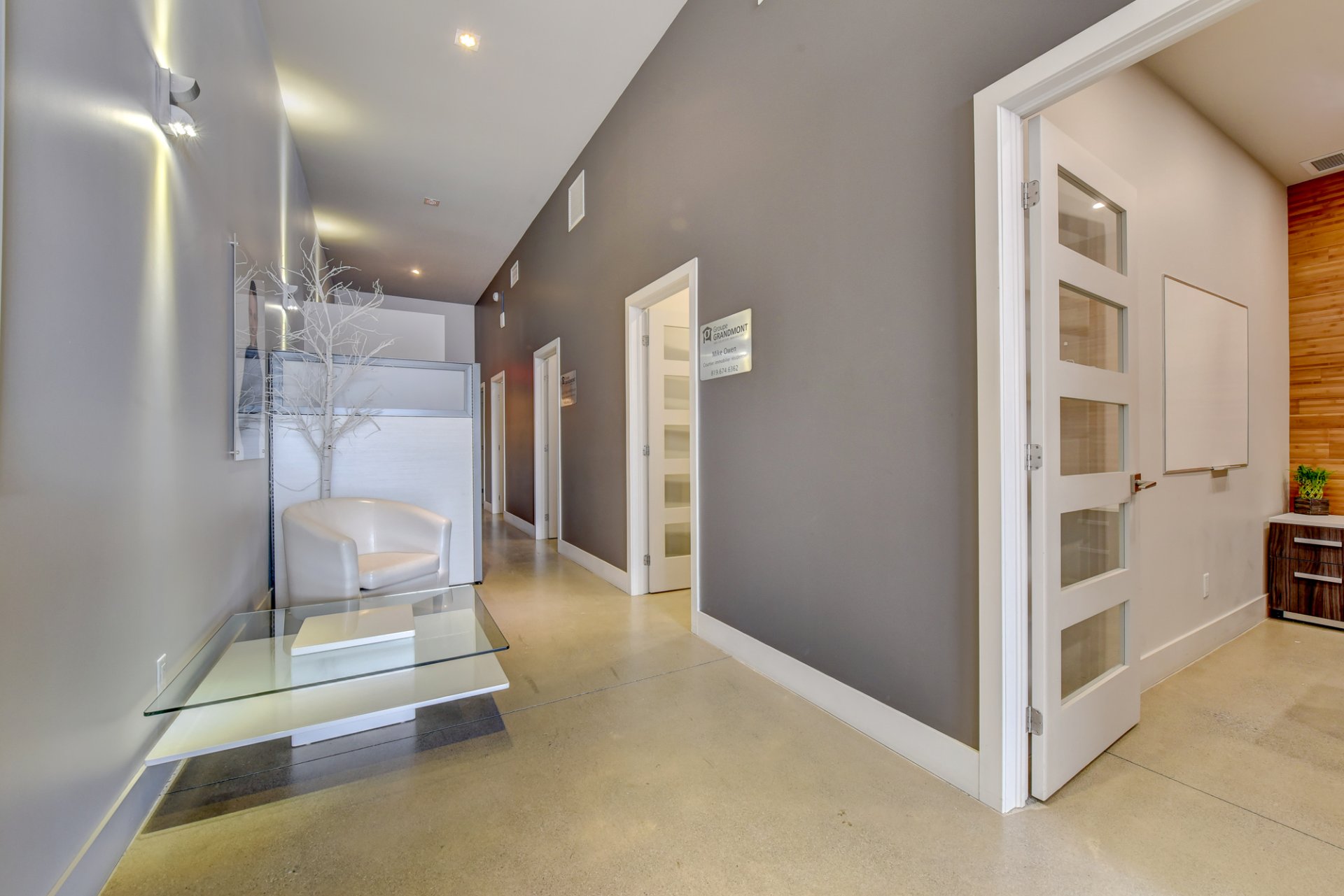- 5 bureaux de 11’10 » x 8′ qui ont une jolie porte française puis une déco moderne et au goût du jour.