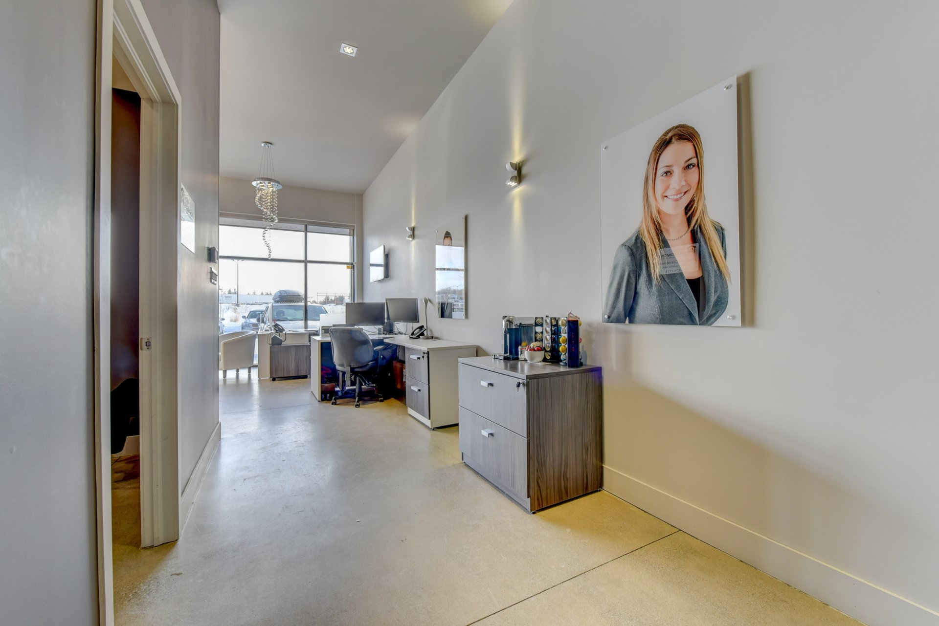 - Large corridor permettant d’y mettre des chaises pour vos clients, une machine à café, une machine à eau, etc.